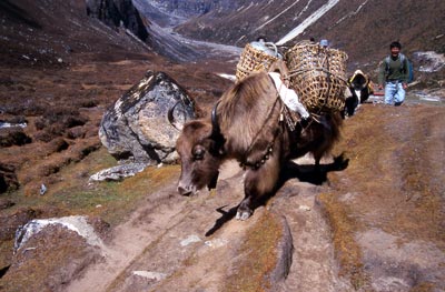 | Nourriture, combustible, vetements, transport, le Yak est avec l'orge et la pomme de terre un élément essentiel de l'economie des hautes vallées himlayennes | |||||||