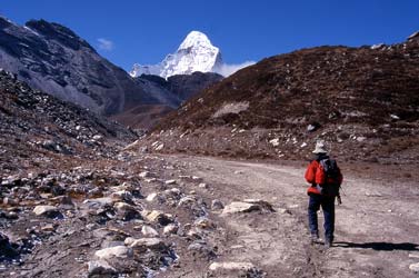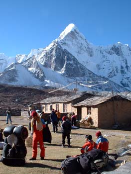 l'arrivée du soleil. Descente à Dingpoche où nous faisons à la fois le lunch et le camp. Dans l'après-midi, petite visite à l'hôpital de Pheriche pour y laisser le Diamox non utilisé. Montée : 60 m |